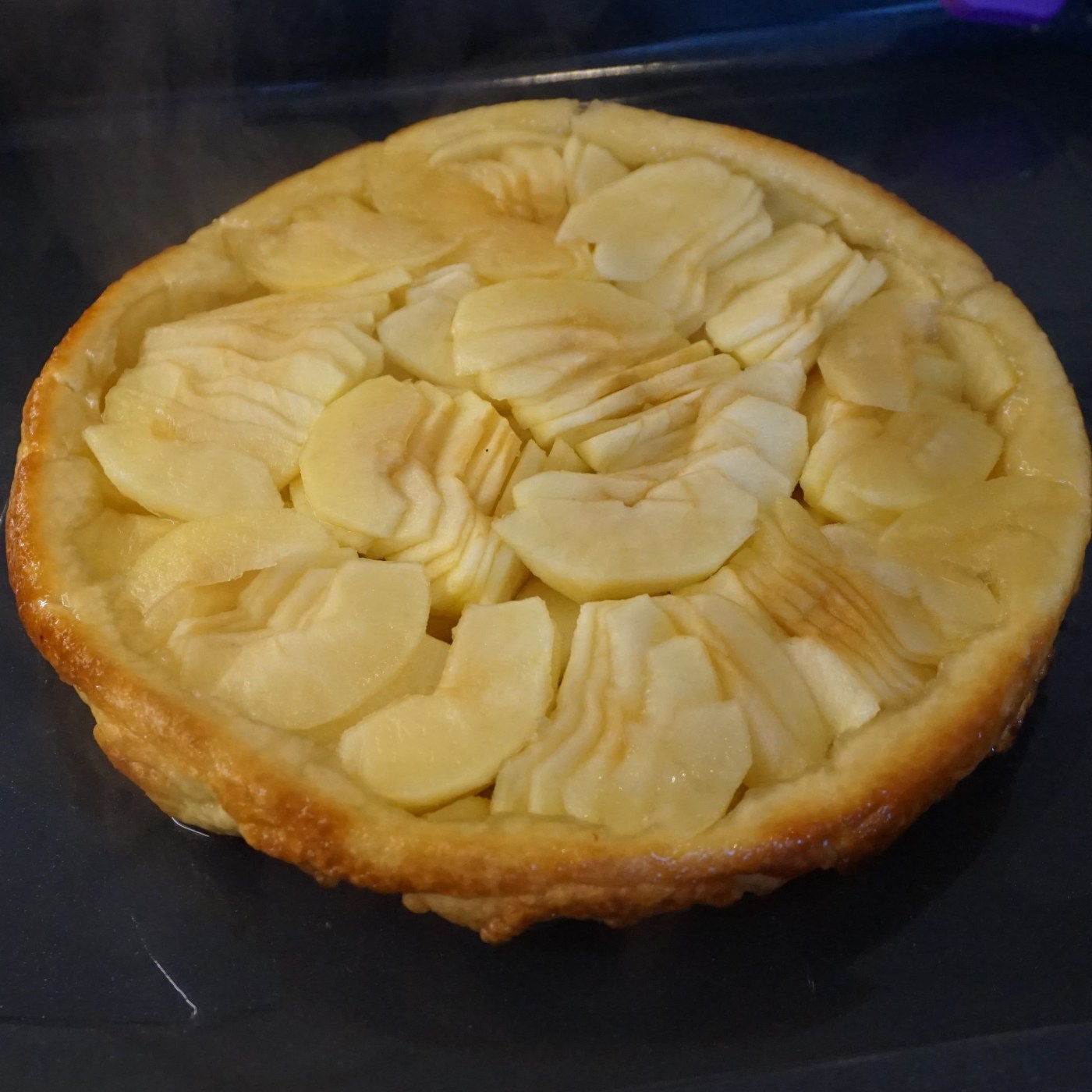 Dieser simple Apfelkuchen wird verkehrt herum gebacken – umgestülpt und dann kurz gegrillt.